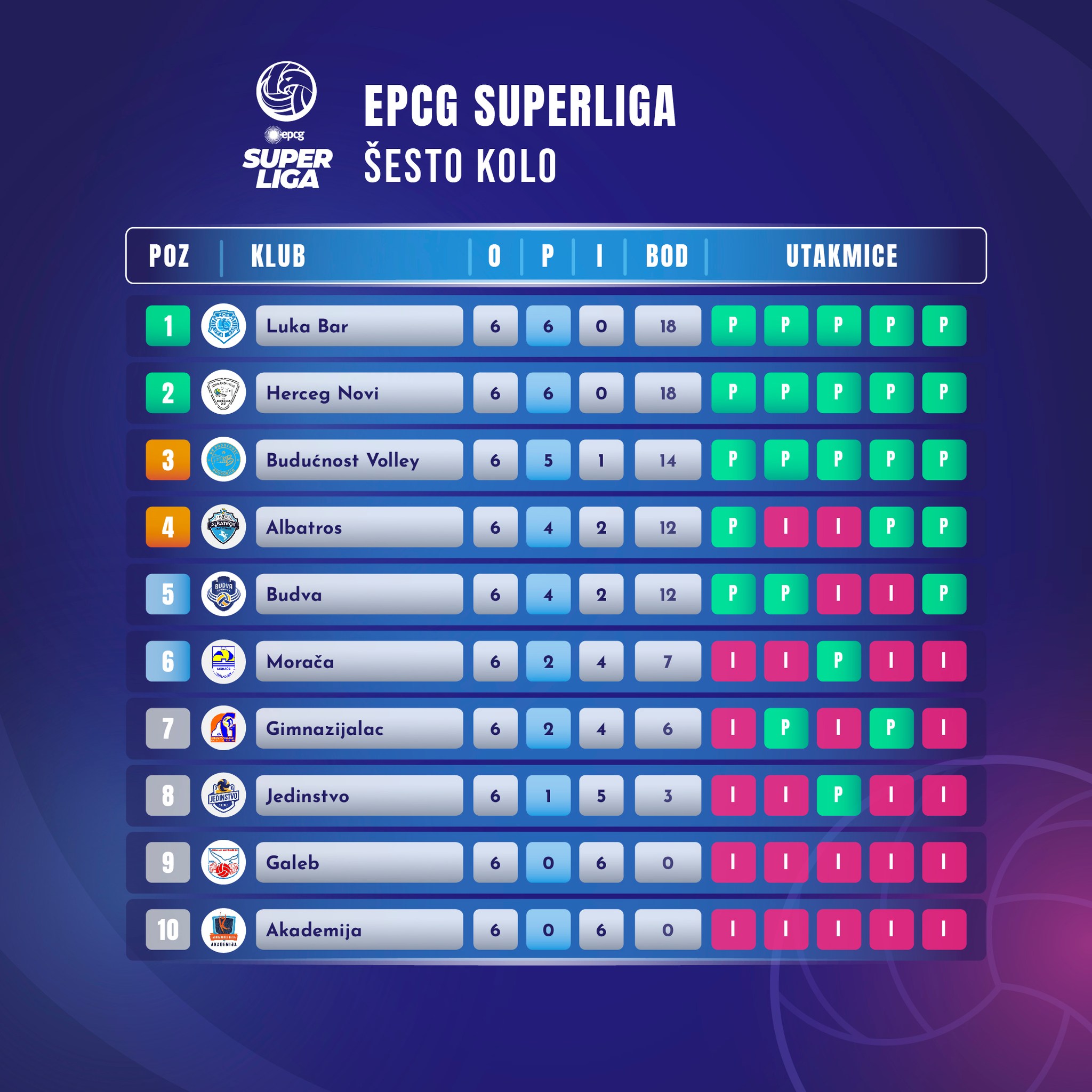 Naše odbojkašice nastavljaju da nižu pobjede. U dosadašnjem dijelu EPCG Superlige Crne Gore ostvarile su svih 6 pobjeda sa maksimalnim rezultatom od 3:0 u setovima.